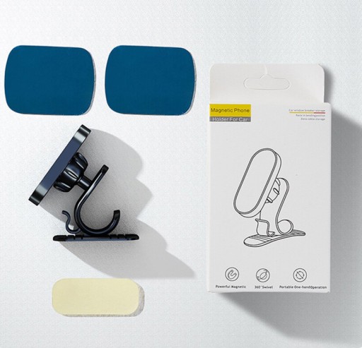 Poza uchwytem do zestawu są dołączone dwie magnetyczne blaszki, dzięki czemu nie oszczędza się czas na poszukiwania blaszek w innym miejscu. W dołączonym fabrycznym pudełku znajdzie się również klejący pasek na spód uchwytu by mocno i stabilnie zamocować go w aucie.