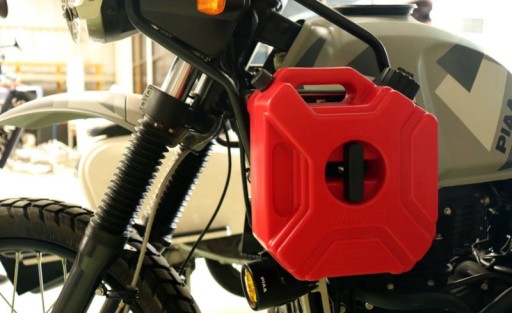 Korek po odkręceniu zamienia się w lejek z długą szyjką , zapobiega rozlewaniu paliwa.