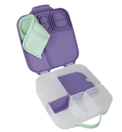 Duży lunchbox b.box jest produktem funkcjonalnym i wygodnym w użytkowaniu. Do przenoszenia służy poręczny uchwyt. Klips zamykający dobrze trzyma a jednocześnie z łatwością daje się otworzyć nawet przedszkolakom. Także mycie nie nastręcza kłopotów. Nie ma tu trudno dostępnych zakamarków, ruchome przegrody są wyjmowane a silikonowa uszczelka na pokrywce zdejmowana. Dzięki temu szybko i dokładnie umyjesz i osuszysz lunchbox. Pudełko z jedzeniem możesz także schować do lodówki.