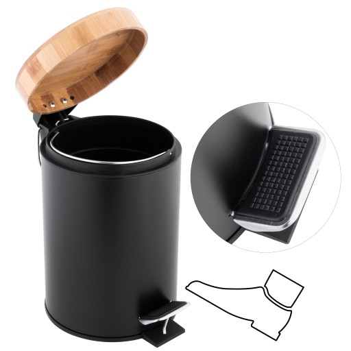 Kosz na śmieci - czarny / bambus