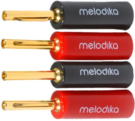 Melodika MDBAN4 to komplet 4 sztuk pozłacanych 24 karatowym złotem wtyków bananowych najwyższej jakości.