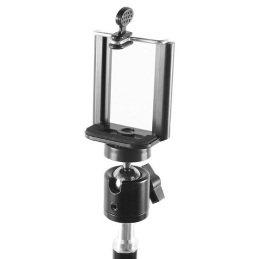 W zestawie znajduje się uchwyt pozwalający zamontować telefon na statywie. Jest to idealny produkt dla posiadaczy nowoczesnych smartfonów, którzy chcą rozbudować swoje możliwości fotografowania i filmowania. Uchwyt jest kompatybilny z większością modeli smartfonów z zakresu szerokości 61-87mm. Montaż jest bardzo prosty oraz bezpieczny dla telefonu, gdyż jego wnętrze, w którym umieszcza się telefon, wyścielone jest antypoślizgową gumą. Uchwyt jest lekki i zgrabny, dzięki czemu jest bezproblemowy w transporcie. Wykonany z bardzo solidnego plastiku oraz gumy, będzie się sprawdzał w każdych warunkach.