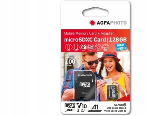 Карта AGFA MicroSDXC Micro SDXC 128 ГБ 100 МБ/с V10 U1 MicroSD + АДАПТЕР
