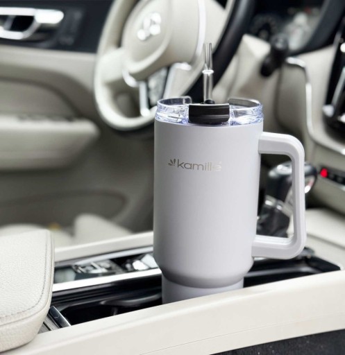 - Ergonomiczny kształt i rączka – Zapewnia wygodny chwyt, zwężana podstawa umożliwia umieszczenie go w uchwycie samochodowym.