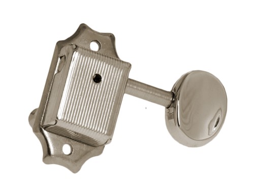 Komplet wzorowanych na starych, vintage'owych konstrukcjach firmy Klusone®. kluczy do gitary elektrycznej. Produkowane przez uznaną koreańską firmę klucze, charakteryzują się dobrą kulturą pracy, precyzją strojenia oraz bardzo dobrą jakością wykonania. W komplecie śrubki, tulejki oraz podkładki czyli wszystko co jest niezbędne do montażu. Diagram przedstawia oferowaną konfigurację kluczy. Wymiary na załączonym zdjęciu.