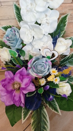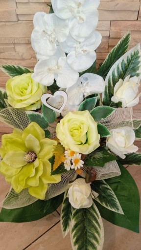 (cena dotyczy TYLKO bukietu do wazonu, natomiast kompozycja do postawienia na grobie dostępny na innej auckji)