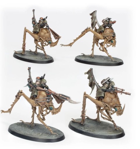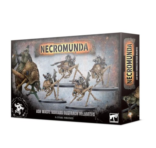 Ash Waste Nomads have inhabited the Great Equatorial Wastes for as long as anyone can remember. Unlike the outcasts and scavvies, these rugged survivors are born to the wastes, adapted to life in a desolate and deadly environment. Eschewing vehicles, which require fixed workshops and extensive maintenance, the Ash Waste Nomads instead tame the macro-insects that live in the wastes. Known as Dustback Helamites, these creatures can swiftly skitter across the shifting dunes, bearing skilled riders to provide loping speed and devastating hitting power on raids.