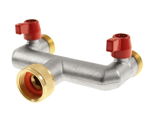Rozdzielacz 2-drożny z GZ3/4" z zaworami kulowymi na kran GW3/4" MOSIĄDZ - Firmy Bradas