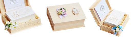 - elegancką, drewnianą szkatułkę w kształcie książki z indywidualną, ręcznie wykonaną dekoracją; wymiar szkatułki 24x19x10cm