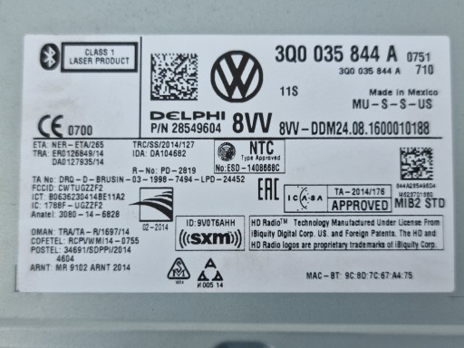 Модуль считывания VW Golf VII Радио Дисплей США