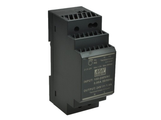 БЛОК ПИТАНИЯ 24 В постоянного тока, 1,5 А, 36 Вт, на DIN-рейку, Mean Well