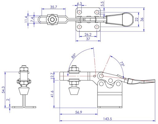 Uniwersalny docisk montażowy 201BHB zapewnia siłę docisku 90 kg i zasięg roboczy 50 mm.
