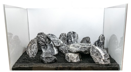 - Ciemny kolor w połączeniu z nieregularnym kształtem skały doskonale kontrastuje z jasnym podłożem w akwariach skalnych typu Tanganika, Malawi.