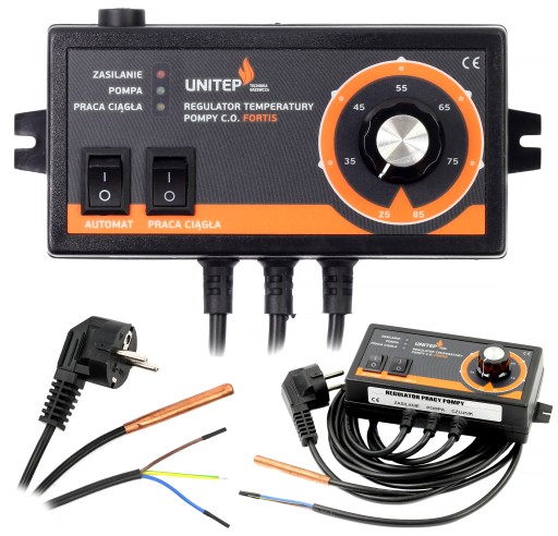 Mikroprocesorowy regulator FORTIS przeznaczony jest do regulacji temperatury załączania pompy obiegowej w instalacji c.o. Zadaniem sterownika jest załączenie pompy, jeśli temperatura wody przekroczy żądaną wartość oraz jej wyłączenie, jeśli wygaśnie w kotle lub temperatura spadnie poniżej nastawionej na regulatorze. Zapobiega to niepotrzebnemu działaniu pompy, co znacząco wpływa na jej żywotność oraz obniża koszty związane z energią elektryczną. Sterownik wyposażony w funkcję ANTYSTOP chroni także pompę przed uszkodzeniem spowodowanym osadzaniem się kamienia w okresie letnim, kiedy pompa nie jest używana.