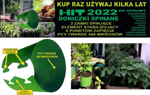 Test wytrzymałości wykonany na naszych doniczkach na rozmiarze 20x20 potwierdził wytrzymałość spiętej pustej doniczki na obciążenie powyżej 4kg – jest to prawdopodobnie najwyższy wynik wśród wszystkich dostępnych na rynku doniczek spinanych. Nasze Doniczki / pierścienie SPINANE wykonane są z folii PCV (polichlorek winylu). Polichlorek winylu jest odporny na działanie kwasów, a nawet rozcieńczonych wodorotlenków, alkoholi, benzyny, olejów i wielu innych. Posiada on doskonałą odporność na korozję, dużą wytrzymałość mechaniczną i zdolności izolacyjne. Dlatego jako producent możemy zaoferować Państwu wysokiej jakości produkt wyróżniający się na tle konkurencji