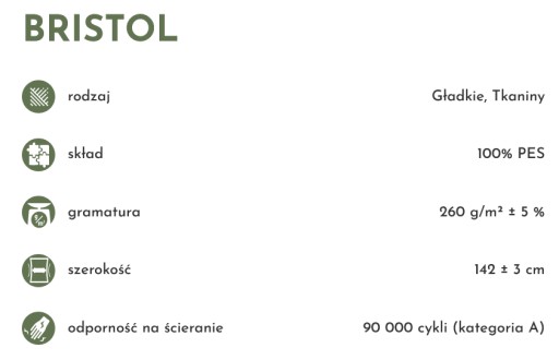 Kolekcja tkanin Bristol to doskonała propozycja do obicia Państwa mebli - od narożników, sof, aż po krzesła. Świetnie sprawdza się także na m.in. poduszkach. Materiał jest przyjemny w dotyku, struktura delikatnej plecionki dodaje niezwykłej elegancji, ale także poczucia komfortu.