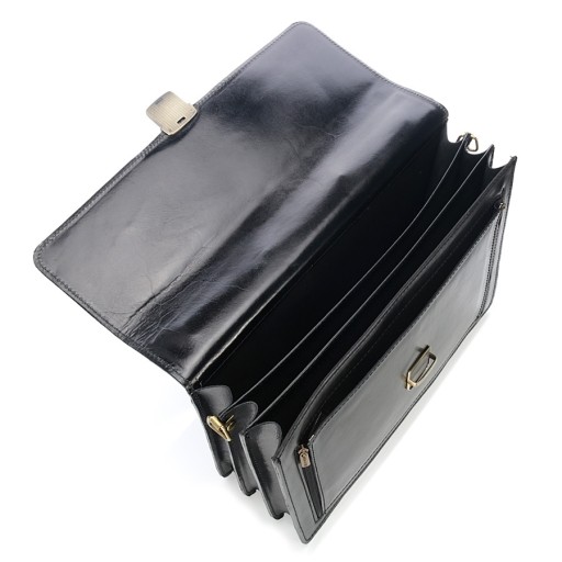 ELEGANCKA SKÓRZANA TECZKA AKTÓWKA DO PRACY CZARNA