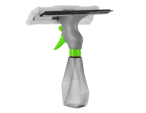 Myjka do szyb razem ze ściągaczką, spryskiwaczem i pojemnikiem na płyn.