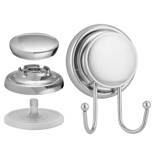 Wieszak łazienkowy z podwójnym haczykiem mocowany do ściany na silną przyssawkę.