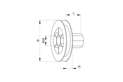 Koło nawojowe z obsadką do rolet zewnętrznych. Stosowane z rurą fi 40 i łożyskiem LO 28 (bez łożyska)