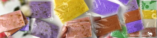 To seria przepięknie pachnących mydeł produkowanych we Francji. Sa to prostokątne kostki z tłoczeniem, w uroczych zapachach.