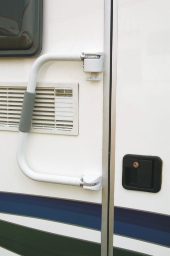 Dodatkowo dzięki dołączonemu do zestawu zamka blokuje się blokując dostęp do drzwi co zapobiega zarówno kradzieżom jak i przypadkowemu otwarciu się drzwi podczas podróży.