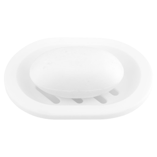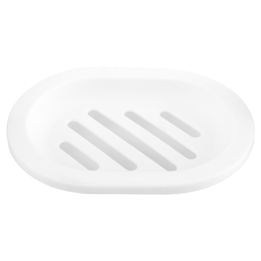 Klasyczna mydelniczka w kolorze białym. Wykonana z wysokiej jakości tworzywa sztucznego. Mydelniczka posiada podłużne otwory umożliwiające odpływ wody. Powierzchnia gładka, matowa.