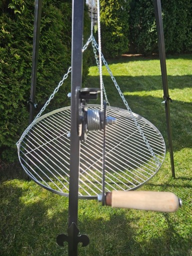 Trójnóg XXL 210 CM największy i najsolidniejszy trójnóg o wysokości 210 cm oraz profilach 20. Trójnóg tych parametrów jest bardzo solidny i super prezentuje się w ogrodzie, posiada kołowrotek z zapadką służącą do regulowania wysokości rusztu dzięki czemu zawsze mają Państwo pełną kontrolę nad procesem grillowania, ponadto grill jest składany z dwóch części, co znacząco ułatwia jego transport.