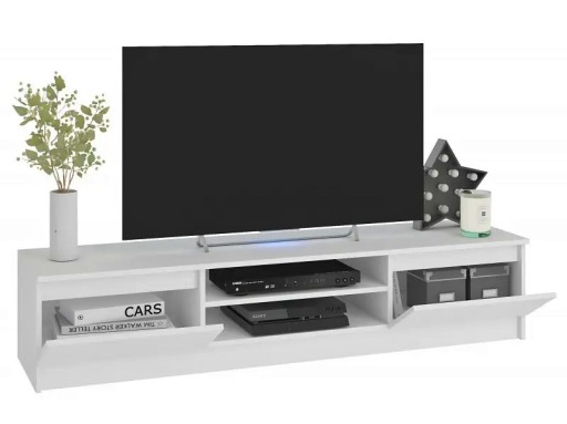 - Wymiary szafki RTV: szerokość: 160 cm, głębokość: 40 cm, wysokość całkowita: 33 cm.