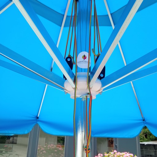 - Wygodne rozkładanie , za pomocą sznurka - który przesuwa masywną rozetę unoszącą całą konstrukcję