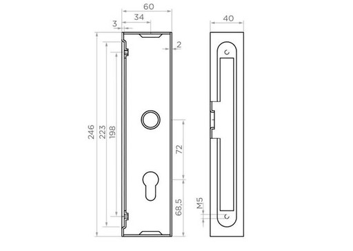 Kaseta zamka do profilu 40x60 mm, obudowa zamka (kaseta).