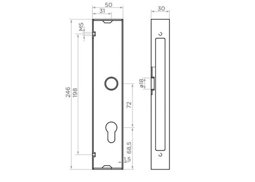 Kaseta zamka do profilu 50x30 mm, obudowa zamka (kaseta).
