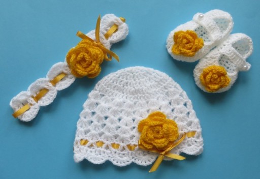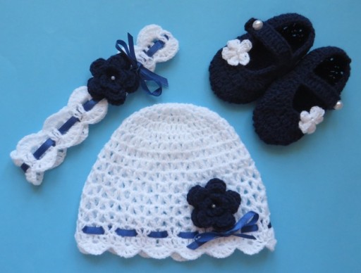Cena dotyczy 1 kompletu: czapeczka+buciki+opaska.