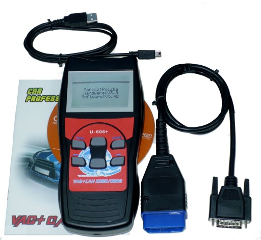 U-606+ to najnowsza wersja testera do diagnostyki wszystkich samochodów osobowych i dostawczych z grupy VAG oraz innych OBD2 oraz EOBD. Przy pomocy urządzenia możemy odczytać i wykasować kody błędów, obserwować parametry rzeczywiste podczas pracy silnika i na postoju, zrobić test sond lambda i elementów wykonawczych, adaptacje, kodowanie itp. Tester U-606+ posiada meni w języku polskim a obsługa jest prosta i intuicyjna. Osoba kupująca urządzenie ma bezterminowy dostęp do darmowych aktualizacji. Tester jest urządzeniem przenośnym i nie potrzebuje dodatkowego zasilania, oraz rozwijania kabli tak jak to jest w przypadku laptopów. Darmowe aktualizacje, brak abonamentu, profesjonalna pomoc techniczna.