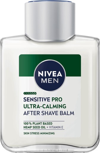 NIVEA® MEN SENSITIVE PRO Ultra-Calming balsam po goleniu z 100% organicznym olejem z nasion konopnych i witaminą E. Przynosi natychmiastowe nawilżenie i wygładzenie zestresowanej skórze. Tolerancja dla skóry wrażliwej potwierdzona dermatologicznie.