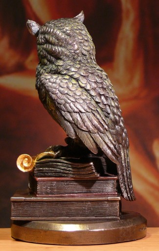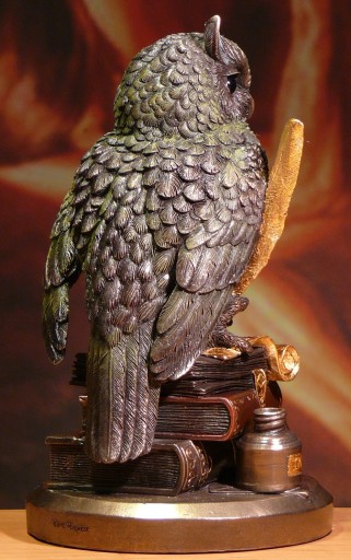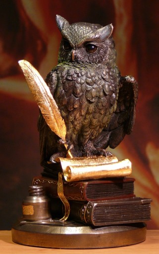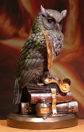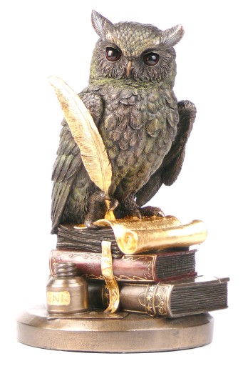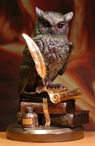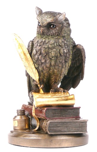 Przepiękna rzeźba SOWY nad księgą z kałamarzem
