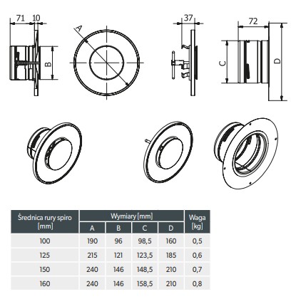 Anemostat okrągły ASV fi 160 stanowi estetyczne zakończenie systemów wentylacyjnych oraz rozprowadzania ciepłego powietrza z kominków.