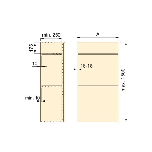 ⬅️ Na rysunku można sprawdzić, jakie wymiary modułu są wymagane do montażu rolety meblowej.