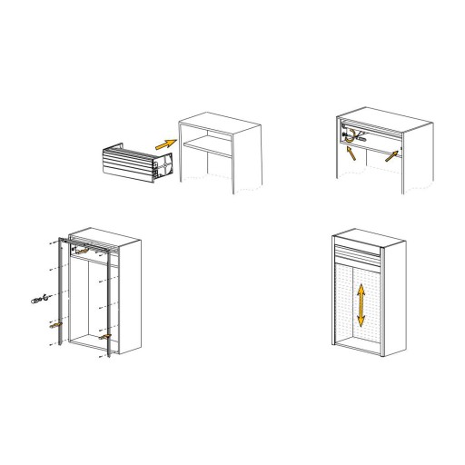 Żaluzja meblowa SUT marki Emuca charakteryzuje się łatwym montażem. W pierwszej kolejności montuje się rolkę do modułu, następnie należy zamontować prowadnice z osłonami, po czym jest ona gotowa do użycia.