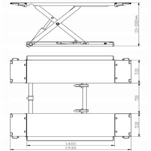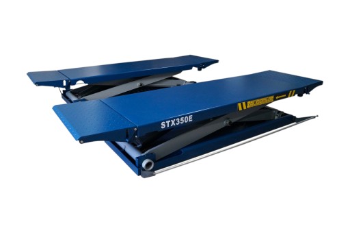 Podnośnik STX350 zostały wyposażony w udźwig 3,5T, długie platformy 1400/2010 mm oraz wózek umożliwiający przemieszczanie podnośnika.