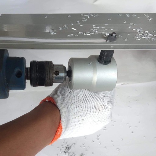 Przystawka do ciecia blachy na wiertarkę . Urządzenie tego typu często stosowane jest w warsztatach blacharki pojazdowej. Przystawka przystosowana do wiertarek o obrotach nie przekraczających 3000 obr/min.