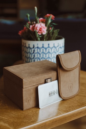 KLASYCZNY DESIGN – klasyczny design pasujący do każdego pomieszczenia. Stylowy zamsz na zewnątrz oraz przyjemny, delikatny materiał wewnątrz powodują, że poza ochroną przed szkodliwymi sygnałami nasze pudełko stanowi również elegancką ozdobę.