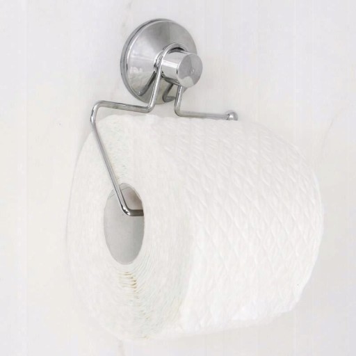 Praktyczny uchwyt na papier toaletowy mocowany na przyssawkę. Uchwyt wykonany jest z chromowanego drutu. Duża przyssawka zapewnia prawidłowe i stabilne utrzymanie uchwytu nawet gdy jest on obciążony. Dobrze trzyma się gładkich powierzchni. Stanowi funkcjonalne wyposażenie nowoczesnej łazienki. Polecamy nie tylko do prywatnych domów ale także do hoteli i pensjonatów.