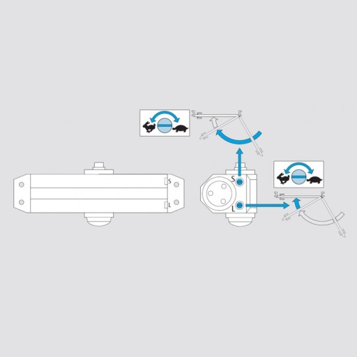 Samozamykacz nawierzchniowy z ramieniem standardowym. Stosowany w drzwiach prawych/lewych o szerokości skrzydła do 1100 mm i wadze do 80kg. Siła zamykania 2/3/4 zgodnie z normą EN 1154. Wyposażony w termozawory dzięki czemu odporny jest na niskie temperatury.