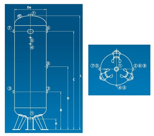 Резервуар для сжатого воздуха 2000 литров Фитинги
