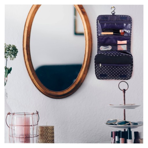 Pojemna i wygodna kosmetyczka z haczykiem do zawieszenia.