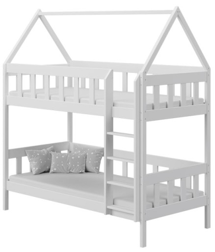 Łóżko Gigi 3X to mocna drewniana konstrukcja w kształcie prawdziwego domku. Dzieci kochają takie rozwiązania. Zachęć swoje maluchy do spania we własnym pokoju tym komfortowym i zaprojektowanym specjalnie dla nich meblem, który wytrzyma wszystkie dziecięce zabawy. W komplecie z łóżkiem otrzymasz dwa wygodne materace, tak by Twoje dzieci mogły od razu po złożeniu korzystać z nowego posłania. Mocna drewniana drabinka ułatwi wchodzenie na górę, a konstrukcja w kształcie dachu domku to świetne miejsce do zawieszenia kolorowych lampek czy dziecięcych zabawek. Bezpieczeństwo Twoich dzieci w trakcie spania gwarantuje też zestaw barierek, które zapobiegną spadnięciu maluchów na ziemię. Wybierz jakość, która da Ci zadowolenie z mebla i spokojny sen Twoich dzieci w jednym.