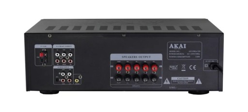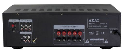 AKAI AS110RA-320 posiada na przednim panelu między innymi slot na kartę SD oraz port USB, przez który możemy również odtwarzać muzykę. Wbudowany tuner FM pozwoli na słuchanie ulubionej rozgłośni radiowej. Amplituner wyposażono także w funkcję karaoke z możliwością podłączenia dwóch mikrofonów. Na wyposażeniu amplitunera AKAI AS110RA-320 znajdziemy również wyjście pre-out, dwa liniowe złącza audio, wejście gramofonowe MM, wejście anteny FM, wejście Aux oraz wyjście słuchawkowe.