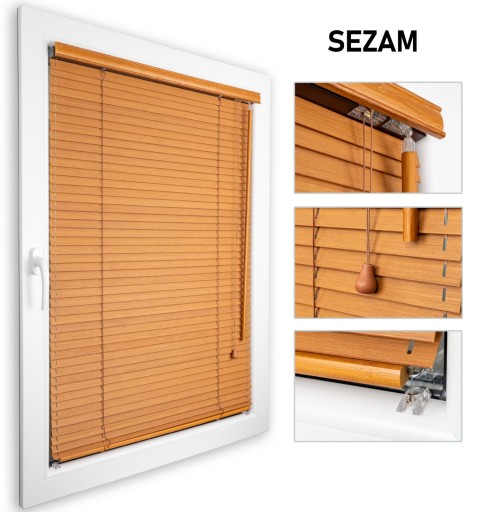 ➡️ Sznurek do podnoszenia zakończony jest derwnianym grzybkiem, a do obracania lameli służy pokrętło.