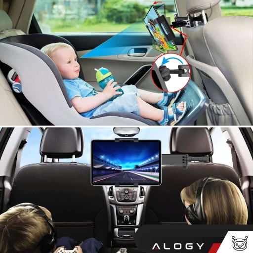 ⭐ Uniwersalny uchwyt samochodowy Alogy na tablet, smartfon lub konsolę przeznaczony do montażu na zagłówku fotela samochodowego to produkt wykonany z trwałych i stabilnych materiałów, które pozwolą na wygodniejsze użytkowanie urządzeń mobilnych przez pasażerów zajmujących tylne siedzenia.